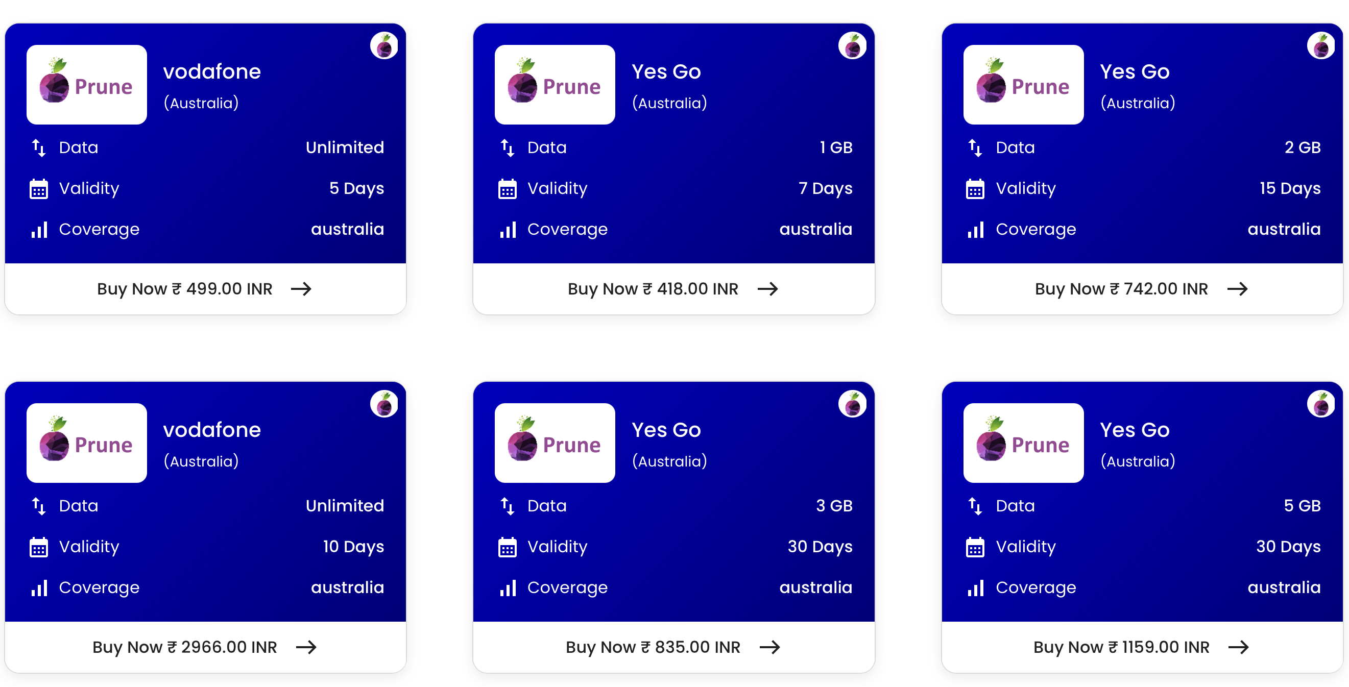 Prune Australia eSIM Data Plans