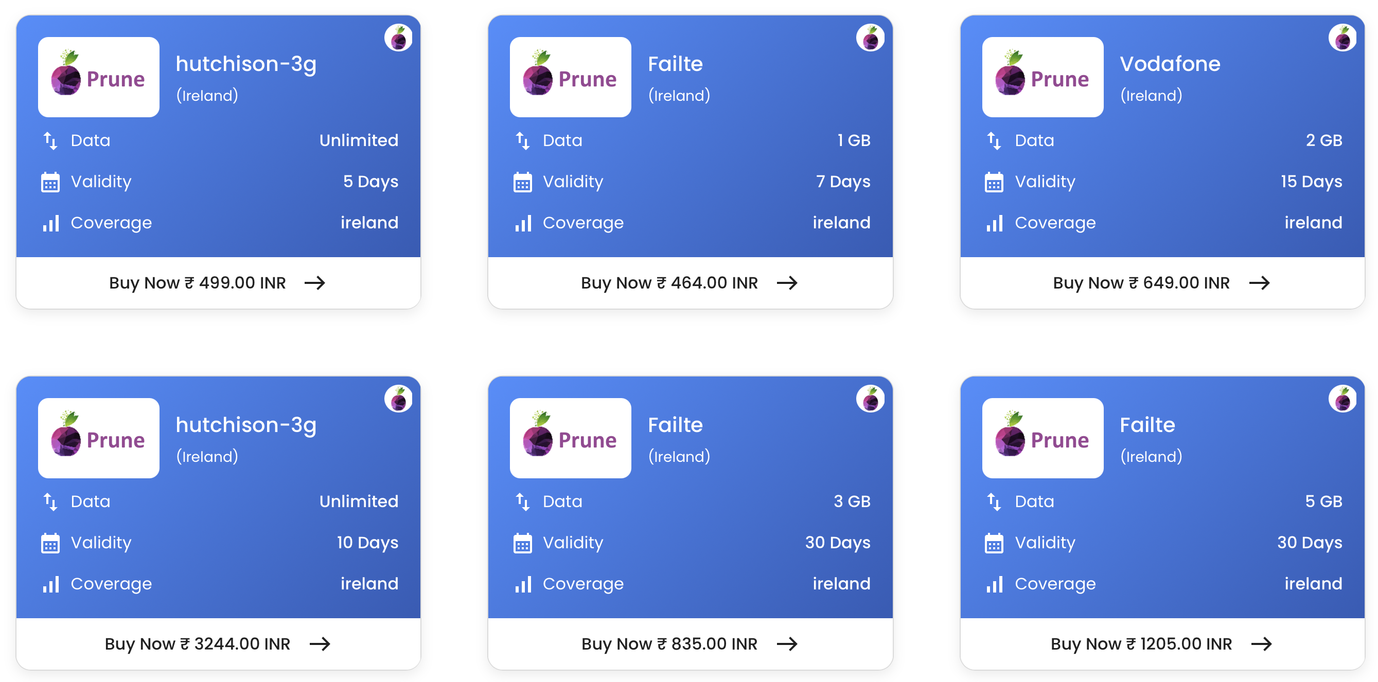Prune Ireland eSIM Data Plans